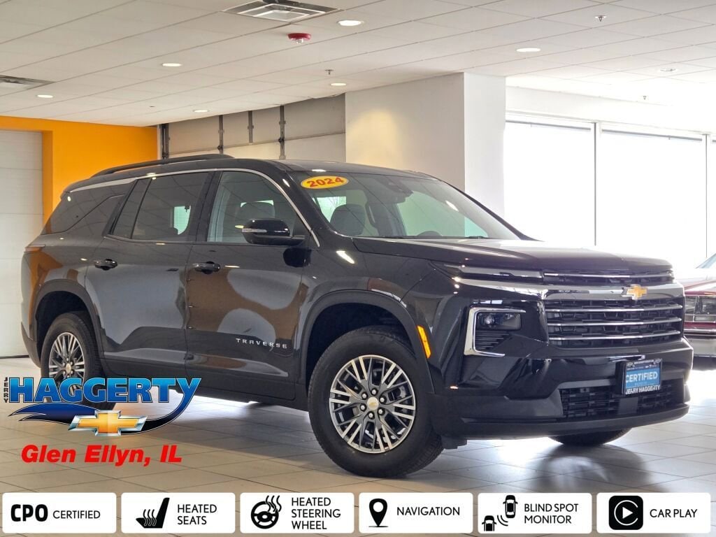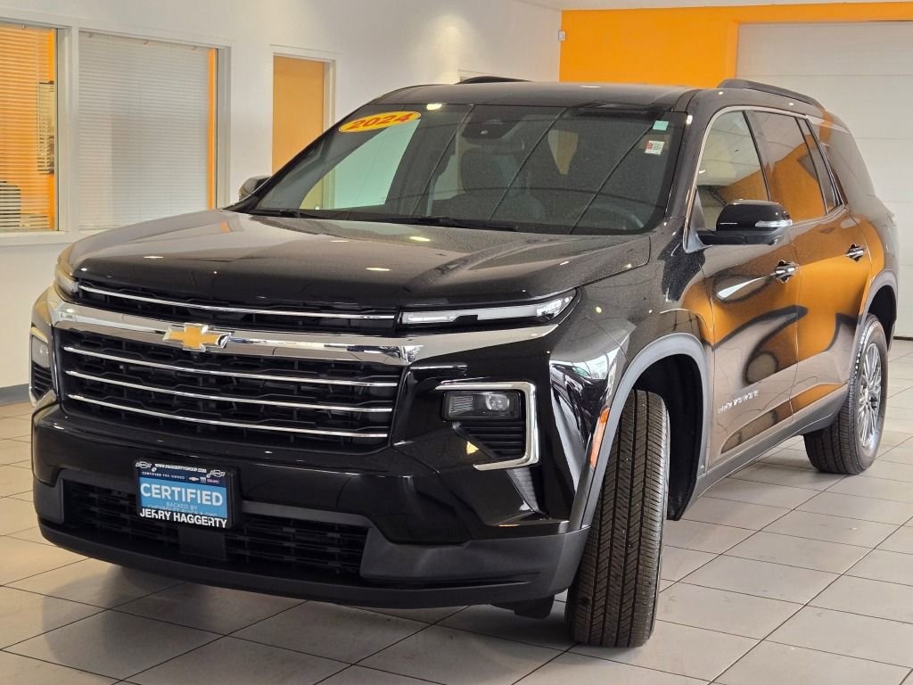 For Value and Integrity, it has to be Haggerty! This Vehicle Features Preferred Equipment Group 1LT, Traverse LT 1LT, Chevrolet Certified Pre-Owned Certified, 4D Sport Utility, 2.5L DOHC, 8-Speed Automatic, FWD, Mosaic Black Metallic, Black Cloth, 3rd row seats: split-bench, 4-Way Manual Front Passenger Seat Adjuster, 4-Wheel Disc Brakes, 6 Speakers, 6-Speaker Audio System Feature, 8-Way Power Driver Seat Adjuster, ABS brakes, Air Conditioning, Alloy wheels, AM/FM radio: SiriusXM with 360L, Apple CarPlay/Android Auto, Auto High-beam Headlights, Automatic temperature control, Brake assist, Bumpers: body-color, Compass, Delay-off headlights, Driver 4-Way Power Lumbar Seat Adjuster, Driver door bin, Driver vanity mirror, Dual front impact airbags, Dual front side impact airbags, Electronic Stability Control, Emergency communication system, Exterior Parking Camera Rear, Four wheel independent suspension, Front anti-roll bar, Front Bucket Seats, Front Center Armrest, Front dual zone A/C, Front reading lights, Fully automatic headlights, Heated door mirrors, Heated front seats, Heated steering wheel, Illuminated entry, Low tire pressure warning, Navigation System, Occupant sensing airbag, Outside temperature display, Overhead airbag, Overhead console, Panic alarm, Passenger door bin, Passenger vanity mirror, Power door mirrors, Power driver seat, Power Liftgate, Power s