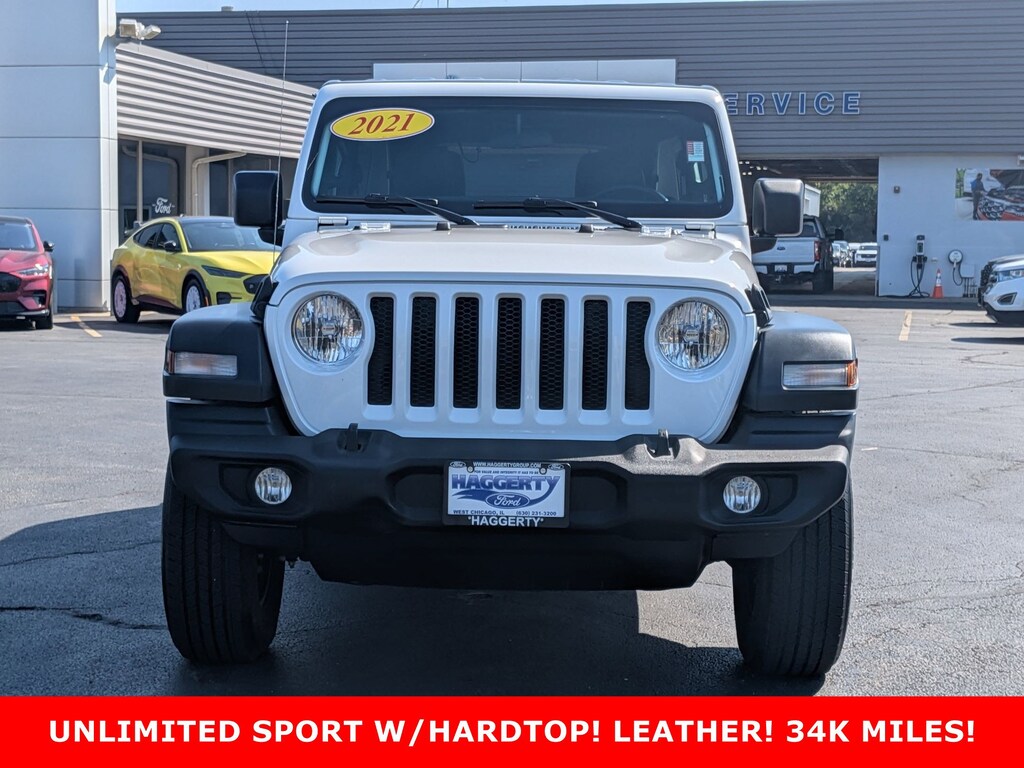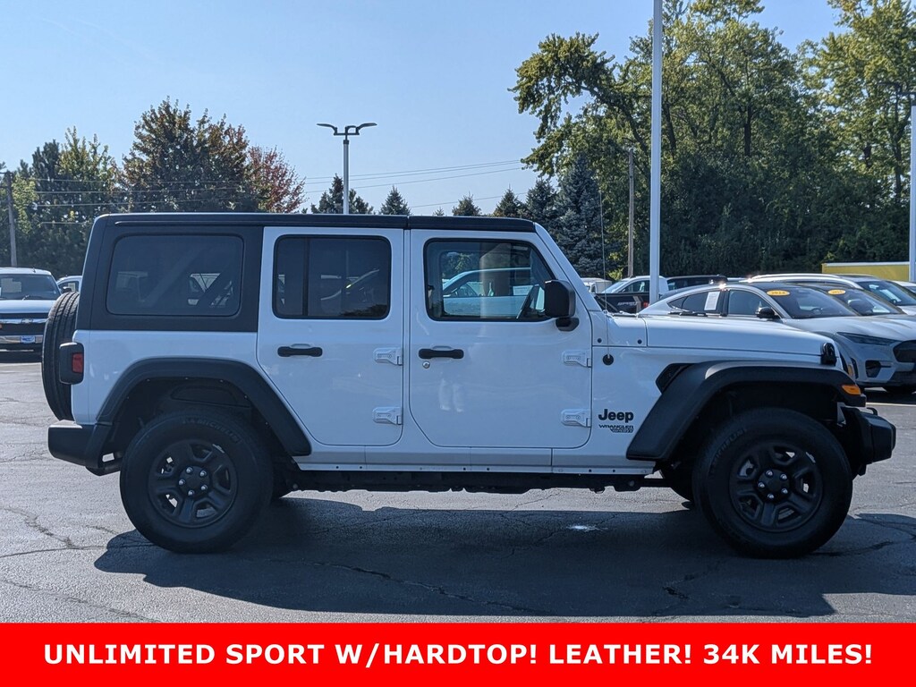 Clean CARFAX. Unlimited Sport GREAT VEHICLE HISTORY!, ***ONE OWNER***3 PIECE REMOVABLE HARDTOP***FACTORY LEATHER SEATING***ANTI-SPIN DIFFERENTIAL REAR AXLE***ONLY 34K MILES & FUN TO DRIVE YEAR ROUND***, 4WD, Black w/Leather Trimmed Bucket Seats, 3.45 Rear Axle Ratio, 4-Wheel Disc Brakes, 8 Speakers, ABS brakes, Air Conditioning, AM/FM radio, Anti-Lock 4-Wheel Disc Brakes, Anti-Spin Differential Rear Axle, Aux Battery, Black 3-Piece Hard Top, Brake assist, Cloth Low-Back Bucket Seats, Compass, Deep Tint Sunscreen Windows, Delay-off headlights, Driver door bin, Driver vanity mirror, Dual front impact airbags, Dual front side impact airbags, Electronic Stability Control, Freedom Panel Storage Bag, Front anti-roll bar, Front Bucket Seats, Front Center Armrest w/Storage, Front fog lights, Front reading lights, Integrated roll-over protection, Low tire pressure warning, MOPAR Black Stitched Leather, Non-Lock Fuel Cap w/o Discriminator, Normal Duty Suspension, Occupant sensing airbag, Outside temperature display, ParkView Rear Back-Up Camera, Passenger door bin, Passenger vanity mirror, Power steering, Quick Order Package 22B Sport, Radio data system, Radio: Uconnect 3 w/5" Display, Rear anti-roll bar, Rear reading lights, Rear Window Defroster, Rear Window Wiper/Washer, Speed control, Split folding rear seat, Steering wheel mounted audio controls, Stop-Start Dual Battery System, Tachometer, Telescoping steering wheel, Tilt steering wheel, Traction control, Trip computer, Variably intermittent wipers, Wheels: 17" x 7.5" Black Steel Styled. Serving the communities of West Chicago, Winfield, Wheaton, Naperville, St. Charles, Batavia, Geneva, Aurora, Carol Stream, Downers Grove, Glendale Heights, Warrenville, and North Aurora.
