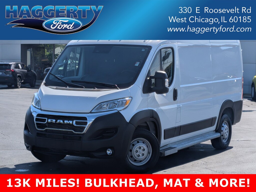 GREAT VEHICLE HISTORY!, ***ONLY 13K MILES ON THIS WORK READY RAM PROMASTER CARGO VAN***FULL MAT, RUNNING BOARDS & BULKHEAD TOO***STILL UNDER FACTORY WARRANTY***, 4 Speakers, 4-Wheel Disc Brakes, ABS brakes, Air Conditioning, AM/FM radio, Apple CarPlay/Android Auto, Black Seats, Bodyside moldings, Brake assist, Center Wheel Cap, Chrome Front Grille, Cloth Bucket Seats, Cluster 7.0" TFT Color Display, Driver door bin, Driver Seat Armrest, Driver's Seat Mounted Armrest, Electronic Stability Control, Front anti-roll bar, Front Bucket Seats, Front Fog Lamps, Front LED Fog Lamps, Front License Plate Bracket, Front reading lights, Front wheel independent suspension, Heavy Duty Suspension, Illuminated entry, Low tire pressure warning, Manual Folding Exterior Mirrors, Outside temperature display, Overhead airbag, Overhead console, ParkView Rear Back-Up Camera, Passenger Bucket Seat, Passenger door bin, Power steering, Power windows, Quick Order Package 22A, Radio: Uconnect 5 w/7" Display, Remote keyless entry, Speed Control, Steering wheel mounted audio controls, Tachometer, Telescoping steering wheel, Traction control, Trip computer, Variably intermittent wipers, Wheels: 16" x 6.0" Steel. Serving the communities of West Chicago, Winfield, Wheaton, Naperville, St. Charles, Batavia, Geneva, Aurora, Carol Stream, Downers Grove, Glendale Heights, Warrenville, and North Aurora.